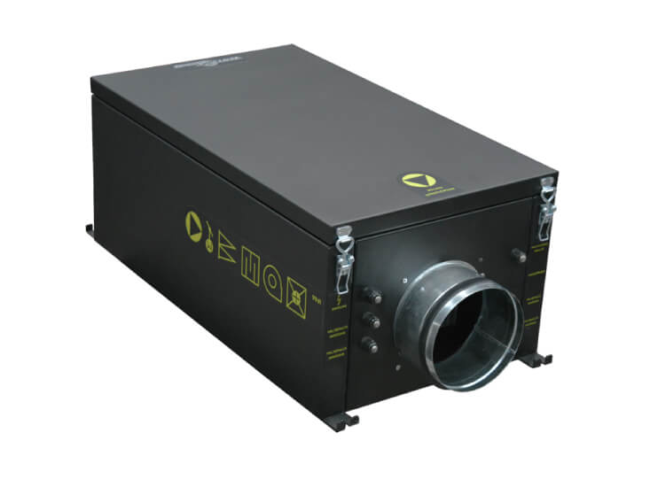 - Встроенный воздушный клапан с электроприводом и возвратной пружиной, принудительно закрывающей клапан при обесточивании установки